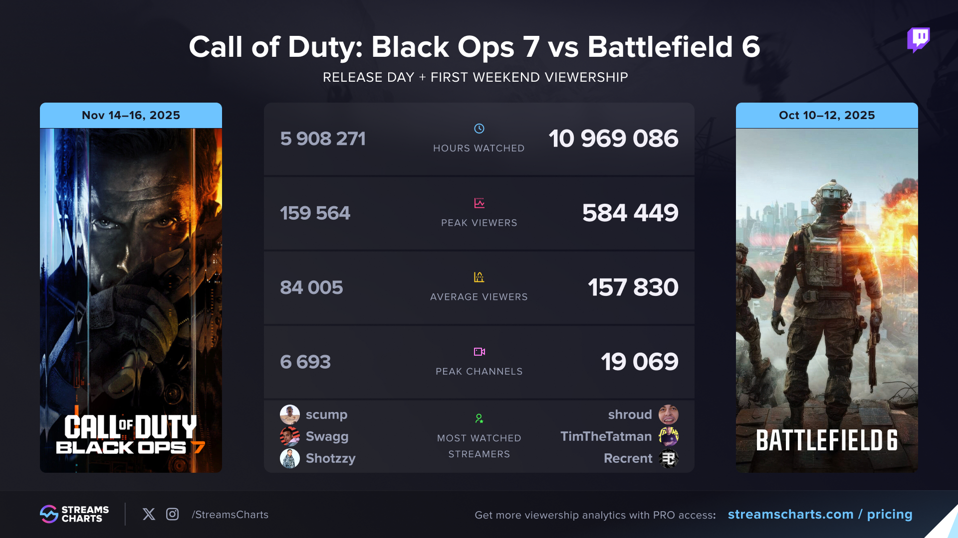 CoD: Black Ops 7 vs Battlefield 6 Viewership Comparison