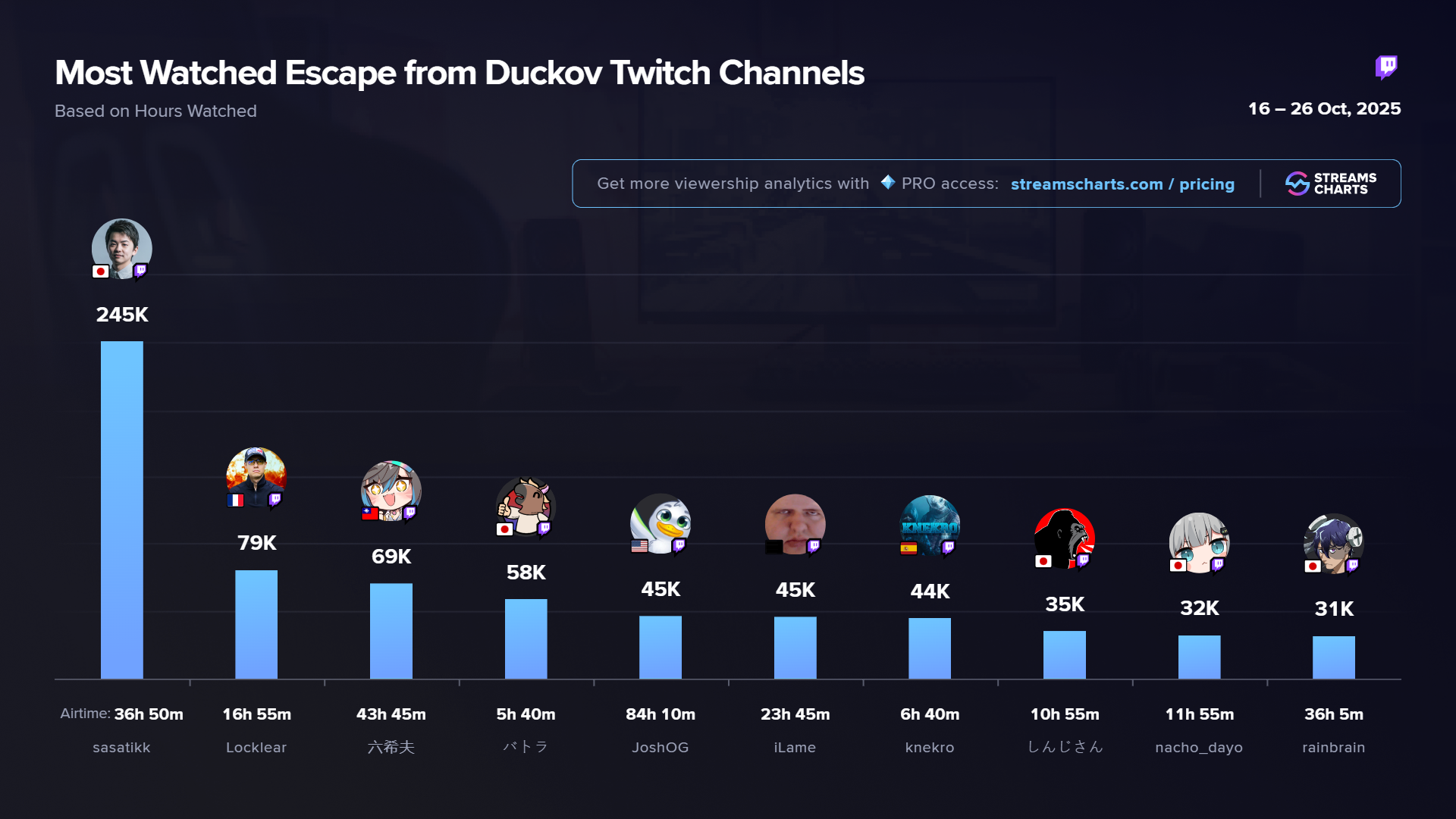 When it comes to regional trends, Escape from Duckov found a particularly strong following among Japanese streamers. Many popular creators, including sasatikk, Hiromichi “im_mittiii” Urahigashi and k4sen, featured the game on their channels. In Europe, Batiste “Locklear” and Sergio “knekro” García were among the most active players, while in the U.S., notable streamers like Saqib Ali “LIRIK” Zahid and TheBurntPeanut also joined in on the fun.