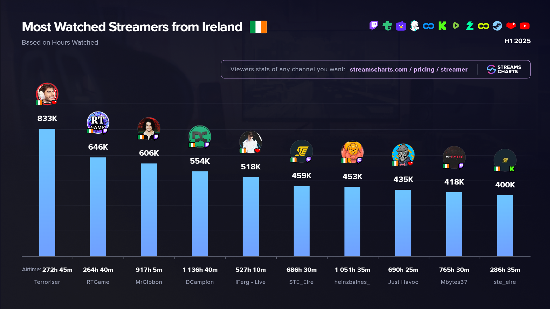 Across YouTube and Twitch, top Irish content creators like Terroriser and RTGame continue to dominate the rankings thanks to their multi-million followerships. Alongside these older names, newer creators like MrGibbon, STE_Eire, and DCampion have built audiences on more current trends, such as Grand Theft Auto V livestreams.