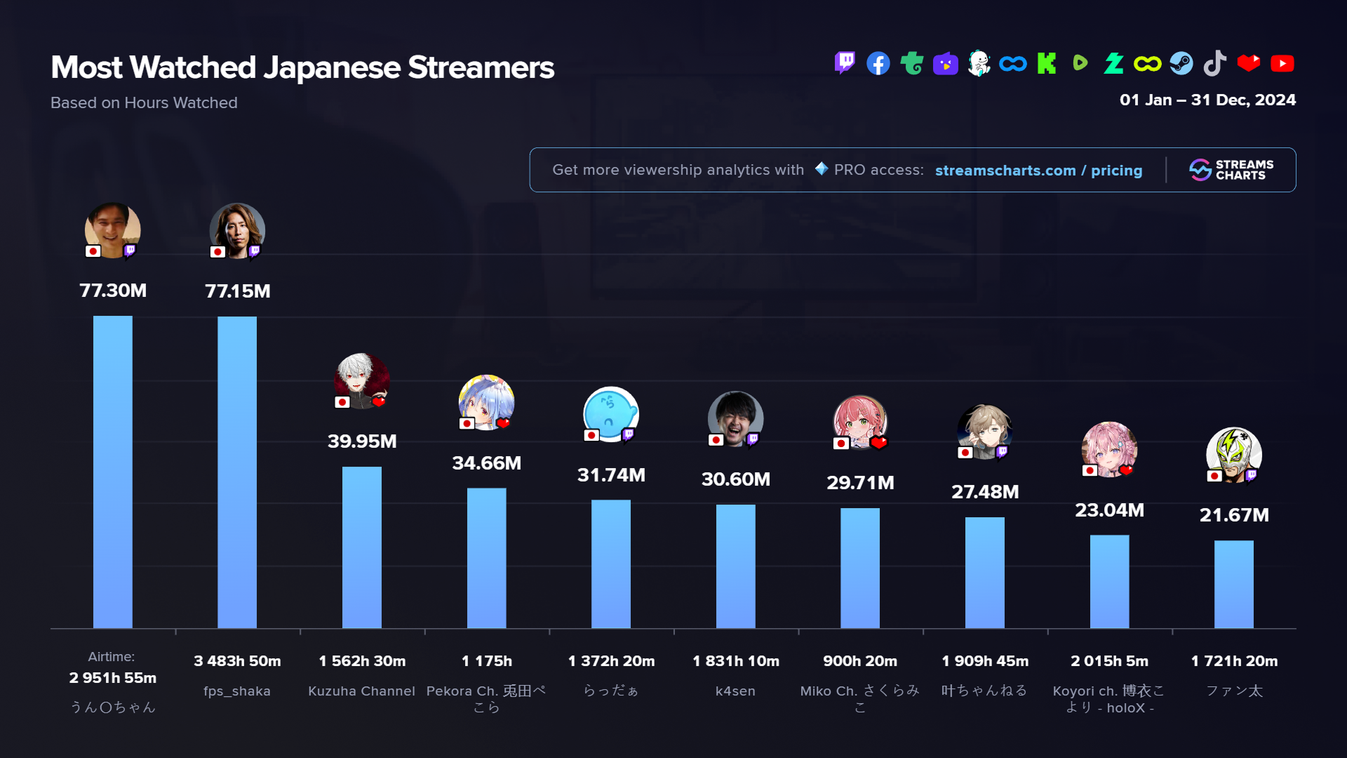 Today, Japan stands among the most recognized nations when it comes to internet and online literacy, and the sheer number of users. Some of the world's top streamers are also from this country, with the likes of Chikara "fps_shaka" Kawakami, K4sen, and Junichi Kato ending among 2024's most-watched content creators.