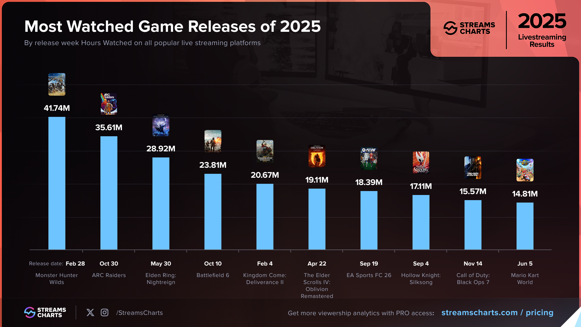 The most-watched game release of 2025 was Monster Hunter Wilds from Japanese developer Capcom. The sequel to Monster Hunter: World launched at the end of February and was met with widespread excitement, appealing not only to longtime fans but to the broader gaming community as well.