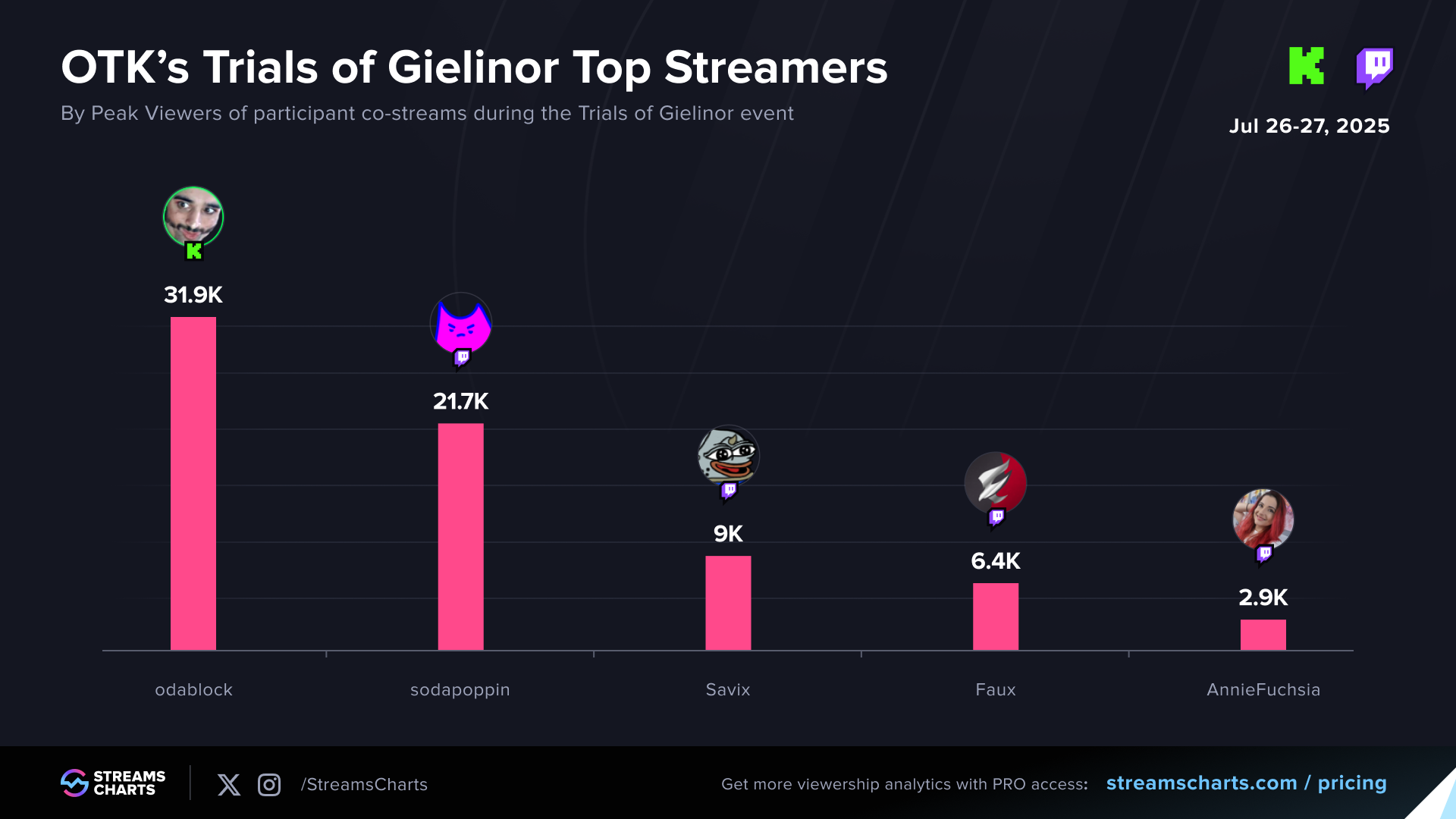 Other popular co-streamers for the event included Savix, Faux, and Annie Fuchsia, but these creators lagged significantly behind the two titans of sodapoppin and Odablock. Viewership for the event was largely focused on the most popular channels, with other involved co-streamers seeing minor, personal boosts in viewership.