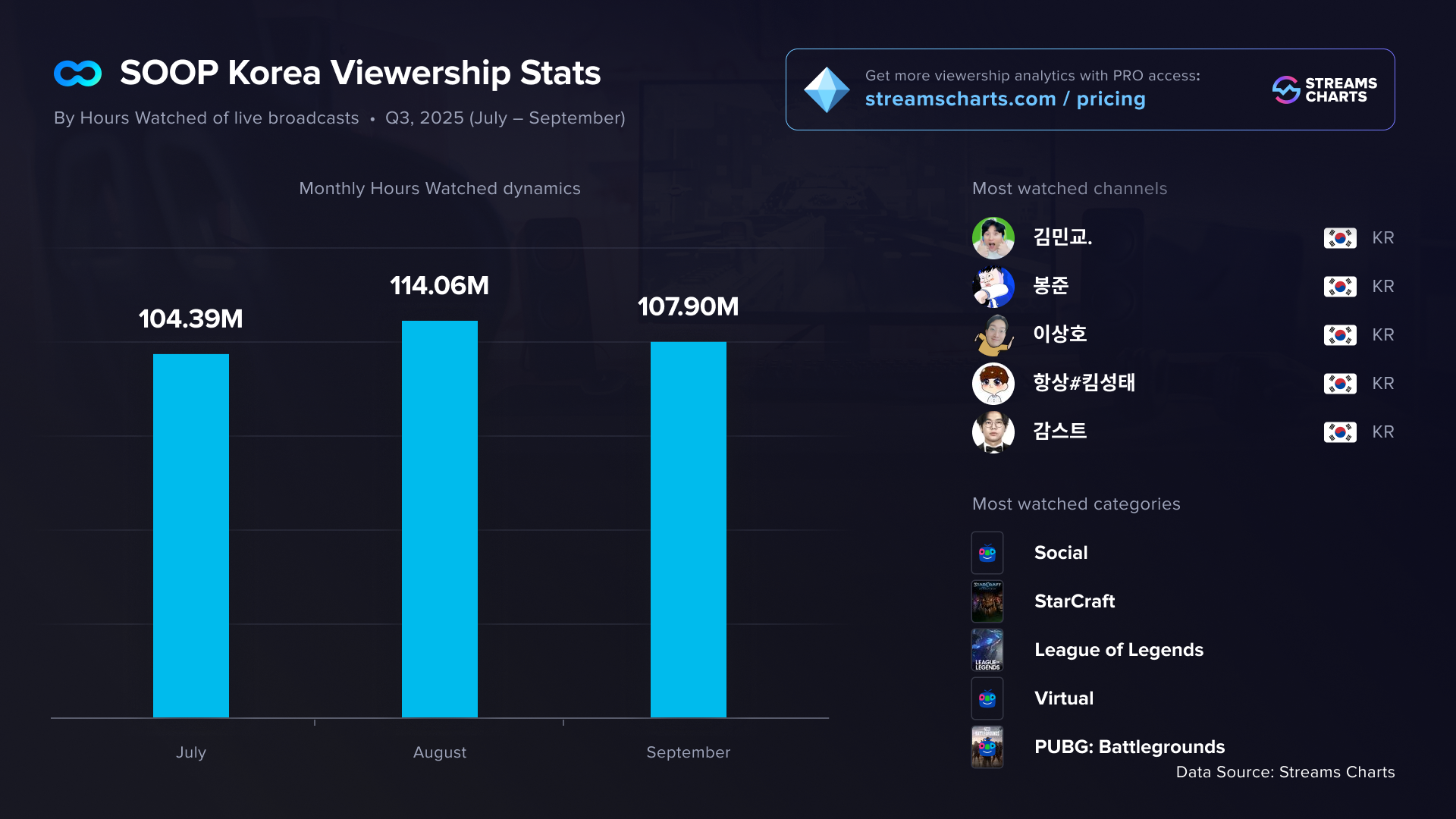 SOOP Korea viewership statistics for Q3 2025
