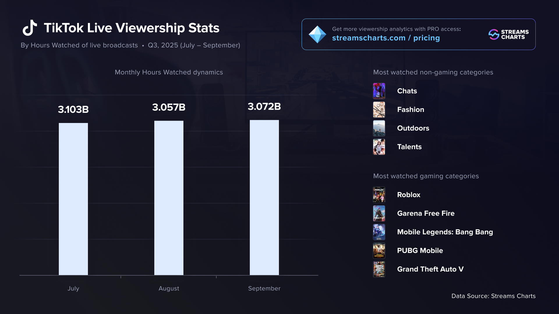 TikTok Live viewership statistics for Q3 2025