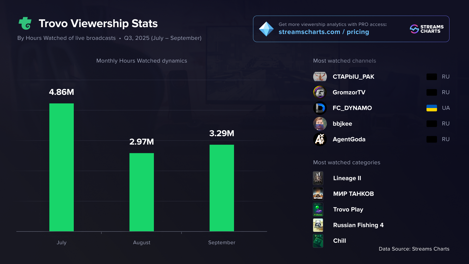 Trovo viewership statistics for Q3 2025