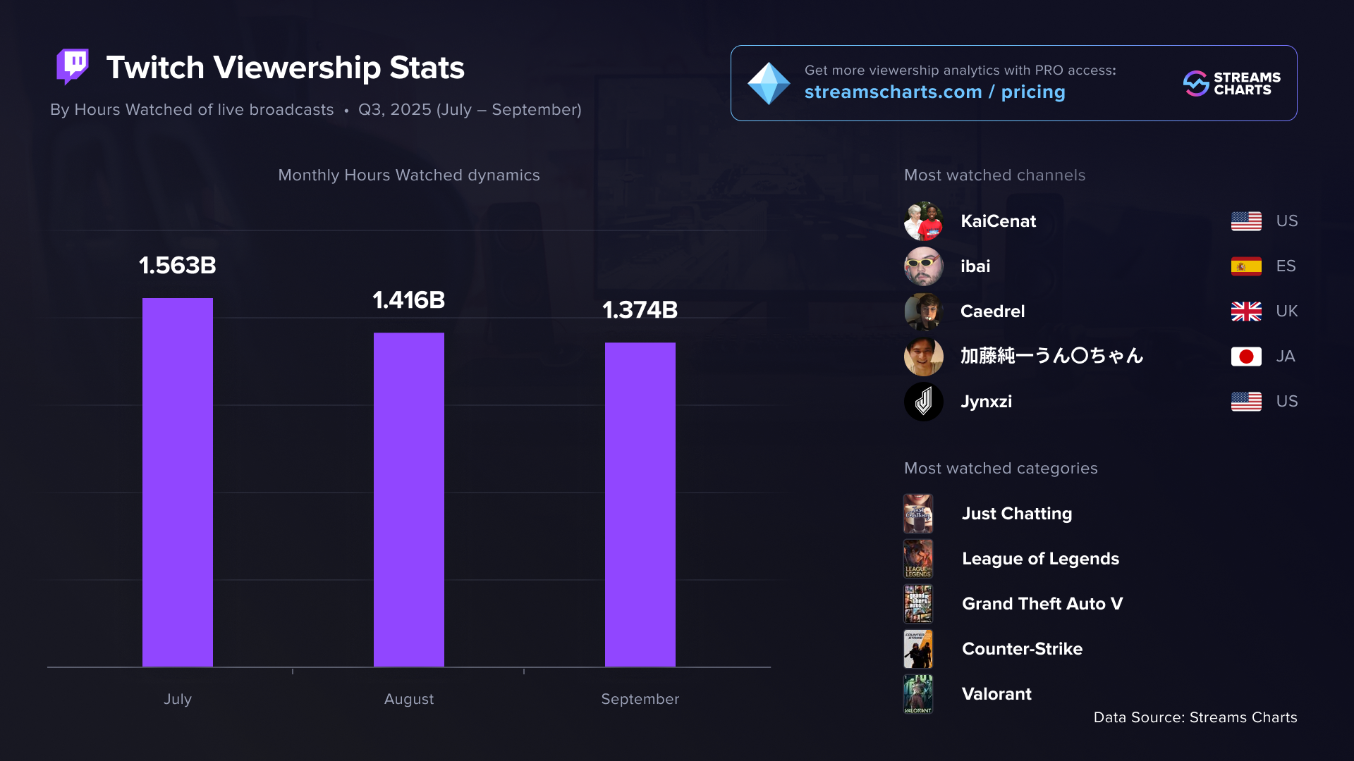 Twitch viewership statistics for Q3 2025