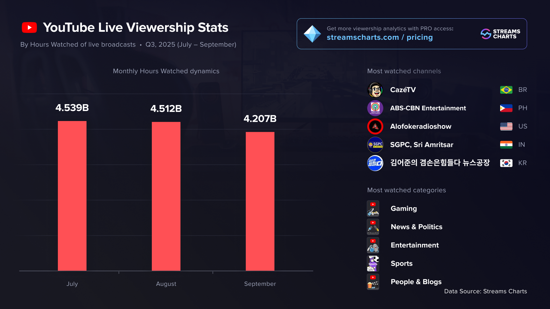 YouTube Live viewership statistics for Q3 2025