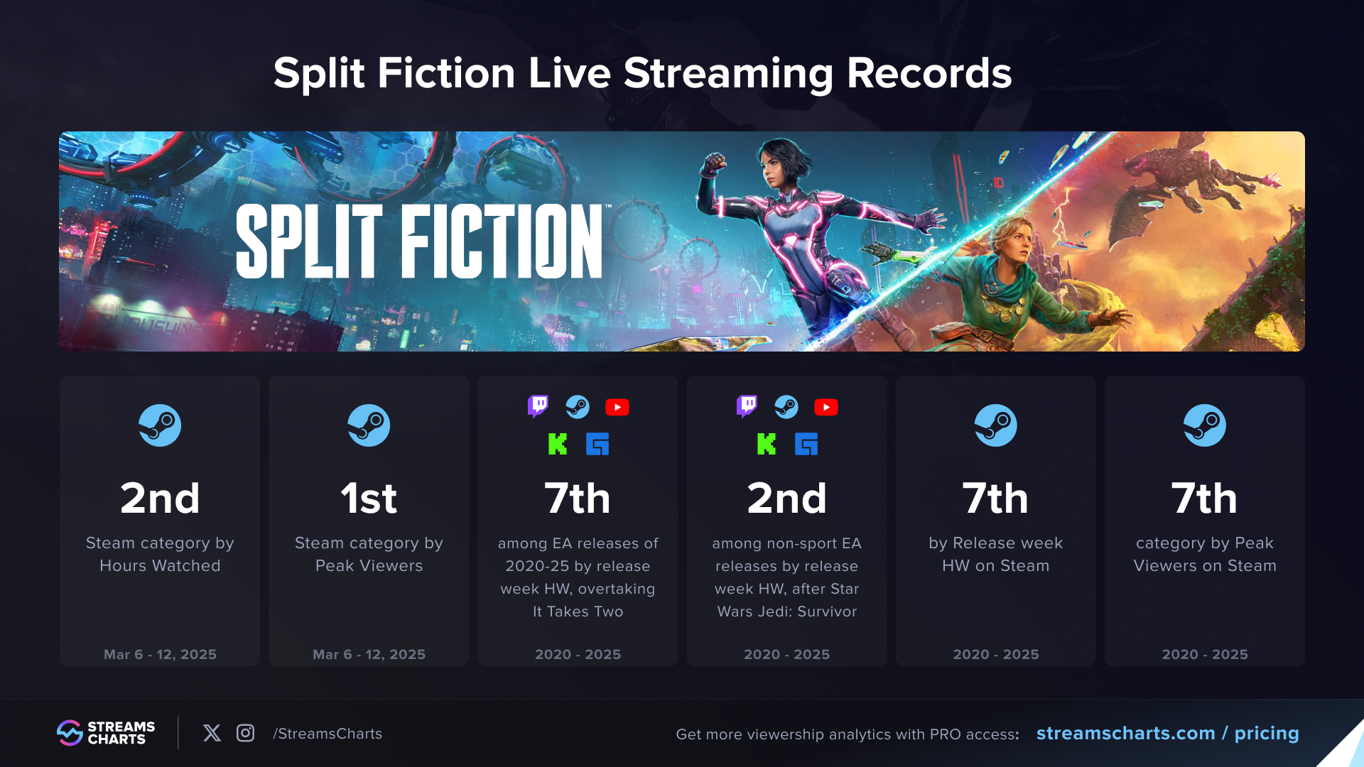 Other notable achievements include Split Fiction becoming the most popular title on Steam in terms of peak viewership during the March 6-12.